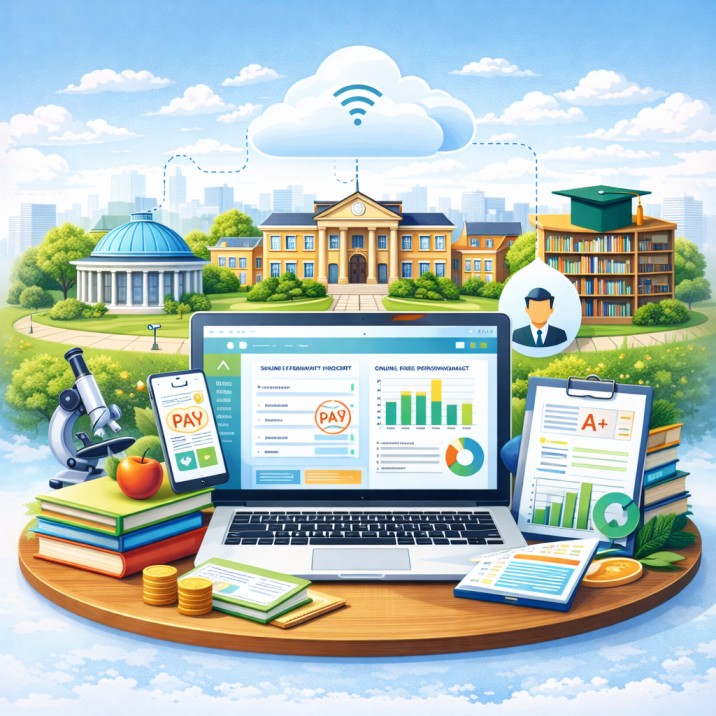 The system enables seamless online fee payments, efficient scholarship management, and accurate generation of financial reports, ensuring transparency and control. Academic performance can be monitored in real time through online marks, assessments, and detailed performance reports. Integrated library management simplifies the tracking and management of books and learning resources.