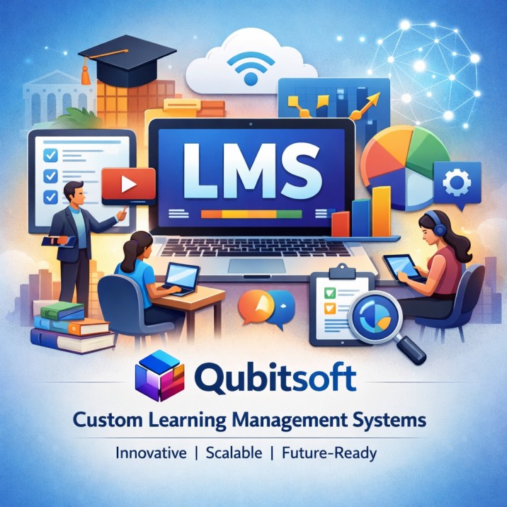 Qubitsoft Solution delivers fully customized Learning Management System solutions designed to meet the unique needs of every client. Our LMS platforms are built to elevate the teaching and learning experience through advanced features such as intuitive course management, seamless content delivery, comprehensive student tracking, interactive communication tools, and detailed analytics and reporting.